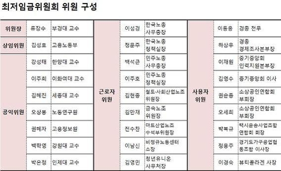 한편 정부는 결정위원회 내에 청년, 여성, 비정규직 근로자와 중소·중견기업, 소상공인 대표를 반드시 포함하도록 법률에 명문화할 방침이다. 이 조치는 민주노총, 한국노총, 경총 등 노동계와 경영계 단체의 위원 몫을 줄이는 효과가 있다.