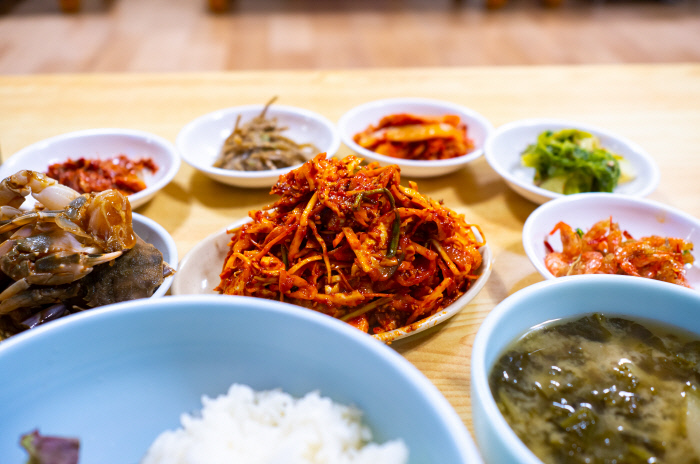 어시장에서 항구 쪽으로 몇 분만 걸으면 밴댕이거리라 쓴 표지판이 보인다. 사실은 건물 1층과 2층에 밴댕이 전문점이 모여 있다. 여럿이 와도 좋고, 혼자 와도 괜찮다. 여럿이면 코스로, 혼자면 밴댕이 비빔밥을 주문하면 된다. 혼자 온 터라 여러 곳 중 조용한 곳에 자리를 잡고 비빔밥을 주문했다. 주로 냉동한 것을 해동해 판매하는데 운 좋게도 그날 경매에 밴댕이 선어가 들어왔다고 했다. 잠시 뚝딱거리는 소리가 들리고는 비빔밥이 나왔다. 매콤, 새콤, 달콤한 양념에 무친 밴댕이무침이 나왔다. 밴댕이가 넉넉하게 들어 있다. 비빔 그릇에 담긴 밥과 비벼 먹어도 좋지만, 같이 나오는 돌게장이나 반찬을 같이 즐기기에는 조금씩 밥에 덜어 먹는 것을 추천한다. 김 나는 밥에 밴댕이무침을 가득 얹어 먹으면 저절로 입꼬리가 올라간다. 선어 무침은 밥 포함, 1만2000원, 해동한 것은 9000원이다. 연백식당 (032)884-1349