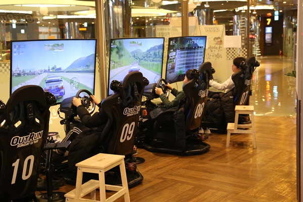 실제 레이싱과 동일하게 레이싱 시뮬레이션도 고도의 집중력이 필요하다. 집중을 하다보면 허기도 질 것이다. 게다가 모션 시뮬레이션이 들어가서 중간에 한 번씩 쉬면서 플레이하는 것이 좋다. 아웃런 선데이드라이브 전자랜드점에는 휴식과 간식 모두 해결할 수 있는 공간이 구비돼있다.