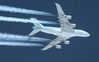 또 공기가 건조할 때 만들어진 비행운은 금방 사라지는데 습도가 높은 지역에서는 풍향에 따라 넓게 퍼지고 오래 남아 있습니다. 그래서 비행운을 하늘의 습도계라고도 부른다고 합니다. 비행기가 날아간 뒤 생기는 비행운으로 비행기 엔진의 갯수도 알 수 있겠지요? 하늘에 그려진 비행운이 두 줄이면 엔진이 2개, 네 줄이면 엔진이 4개인 비행기입니다.