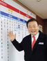 은산해운항공 양재생 대표가 직원 조직도 앞에서 직원들을 자랑하고 있다. 은산해운항공 제공