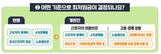 임 차관은 "전문가 의견 등에 따라 결정기준에서 기업 지불능력을 제외하는 대신에 고용에 미치는 영향, 경제 상황 등으로 보완하기로 했다"며 "경제상황 내에서 기업 지불능력과 같은 부분도 폭넓게 포함해서 볼 수 있다"고 말했다.