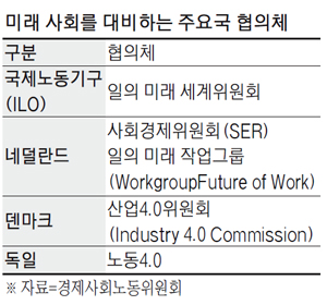 5일 노동계에 따르면 유엔 산하 국제노동기구(ILO)의 '일의 미래 세계위원회'를 필두로 네덜란드(사회경제위원회 산하 일의 미래 작업그룹)와 덴마크(산업 4.0 위원회), 독일(노동 4.0) 등 주요 선진국에서는 노사정이 머리를 맞대고 4차 산업혁명 진전에 따른 고용 충격에 대비하고 있다.