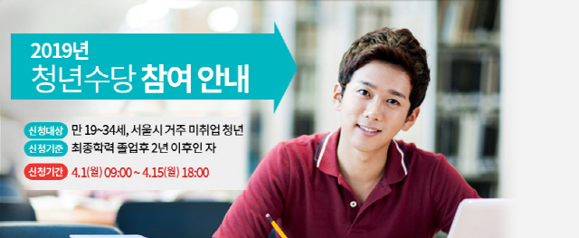 서울시가 2019년 청년수당 사업 참여자를 모집한다. 신청접수는 4월 1일 오전 9시부터 4월 15일 오후 6시까지이다.