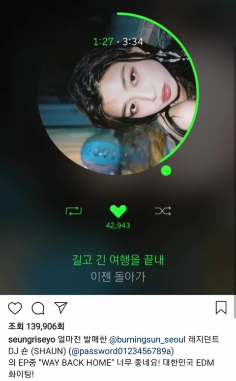 한편 가수 숀은 지난해 6월 발표한 ‘웨이백홈'(Way Back Home)’으로 여러 음원 사이트에서 음원 순위 1위를 차지한 바 있다.