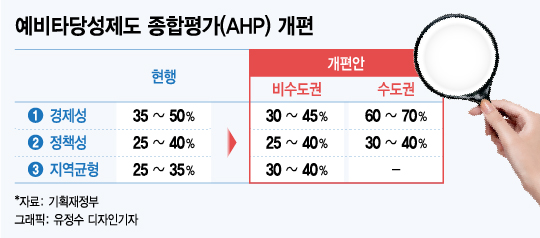 정부는 다음달 1일까지 예타 운용지침 개정 작업을 마치고 개편안을 시행할 계획이다. 변경된 평가 방식은 조사 중인 사업부터 바로 적용된다.