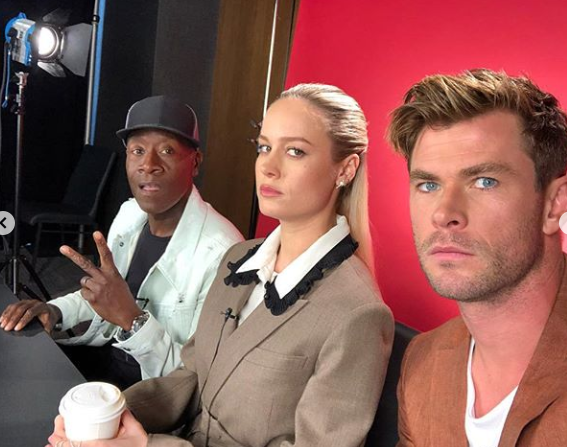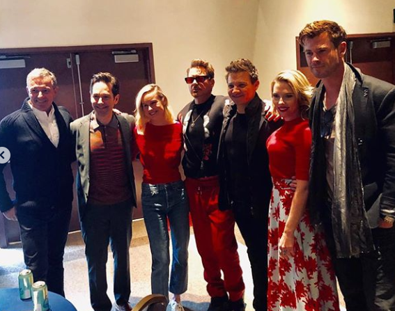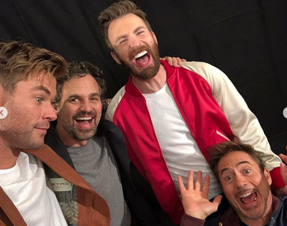사진 속 헴스워스는 로버트 다우니 주니어, 마크 러팔로, 크리스 에반스와 함께 카메라를 보며 유쾌한 표정을 짓고 있다. 이외에 브리 라슨, 스칼렛 요한슨, ,폴 러드, 돈 치들, 조 루소 감독의 모습도 담겼다.