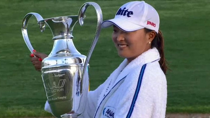 한국 선수로는 박지은과 유선영, 박인비, 유소연에 이어 다섯 번째로 이 대회 정상에 오른 고진영은 대회 전통에 따라 18번 홀 그린 옆에 있는 '챔피언 연못'에 뛰어들었습니다.