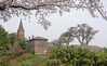 충남역사박물관에서 바라본 공주중동성당 주변 풍경. 벚꽃의 분홍빛과 성당의 붉은 외벽이 아름다운 조화를 이룬다. 이 자리에 서면 공주의 봄은 불그스름한 분홍빛이란 걸 깨닫는다.