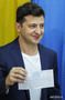 【키에프=AP/뉴시스】우크라이나 대통령선거 결선투표가 치러진 21일(현지시간) 코미디언 겸 배우 출신 볼로디미르 젤렌스키 후보가 투표소에서 투표지를 들어보이고 있다. 2019.04.22.