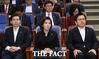 정쟁에 매몰된 국회의 '정치 실종' 사태가 장기화되고 있다. 선거제·사법 개혁안 패스트트랙 지정에 반대하는 자유한국당은 강력한 장외투쟁을 이어가고 있고, 시급한 민생·경제 법안들은 국회에서 잠자고 있다. 지난달 3일 국회에서 열린 한국당 의원총회에서 (왼쪽부터) 조경태 최고위원, 나경원 원내대표, 황교안 대표가 생각에 잠겨 있는 모습. /이덕인 기자 |