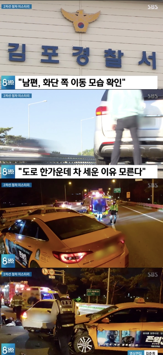 당시 故 한지성은 남편과 함께 이동 중이었다. 남편은 경찰에 "내가 소변이 급해 차량을 세우게 됐고, 인근 화단에서 볼일을 본 뒤 돌아와 보니 사고가 났다"며 "2차로에 차량을 세운이유는 모르겠다"고 진술했다.