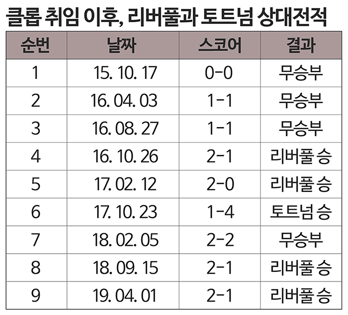 아직 시즌은 끝나지 않았다. 그리고 클롭과 리버풀은 충분히 잘했지만, 아직 2%가 부족하다. 클롭의 취임전과 마찬가지로 리버풀에는 여전히 새로운 우승컵이 없다. 그리고, 이제 그 가치를 증명해 보여야 할 때이다. 결승전 상대는 토트넘이다. 클롭이 리버풀 감독으로 처음 상대한 EPL 팀 또한 토트넘이었다. 2015년 10월 17일 원정 경기에서 양팀은 0대0으로 득점 없이 비겼다. 그리고 클롭 취임 이후 리버풀은 9번의 경기에서 토트넘에 단 한 번 패했다(9경기 4승4무1패). 리버풀 입장에서는 이번 결승전이 절호의 찬스로 보이는 게 사실이다. 하지만, 축구에서는 무슨 일이든 일어날 수 있다. 그리고, 실력으로 자신들의 가치를 입증해야 한다.