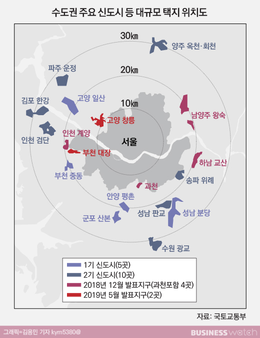 당초 3기 신도시는 서울과 1기 신도시 사이에 조성, 괜찮은 입지에 질 좋은 주택을 공급하는 것을 목표로 했다. 최종 발표된 곳을 보면 서울과 1기 신도시 사이에 위치하는 것은 맞지만 괜찮은 입지인지는 물음표다.