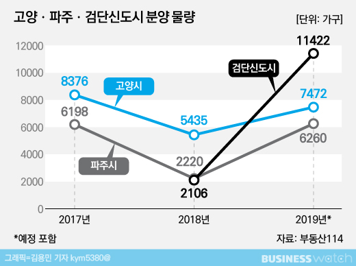 고양시에서는 최근 대규모 주택 공급(분양)이 이뤄지고 있다. 2017년에는 8376가구 작년에도 5435가구를 분양했고 올해도 7427가구가 공급을 앞두고 있다. 파주 역시 창릉지구 영향권이다. 파주에서는 2017년 6198가구, 작년에는 2220가구가 분양했고 올해는 6260가구가 분양될 예정이다. 일산과 파주 등 지역 주민들이 3기 신도시 조성 발표와 함께 강력 반발하는 이유다.