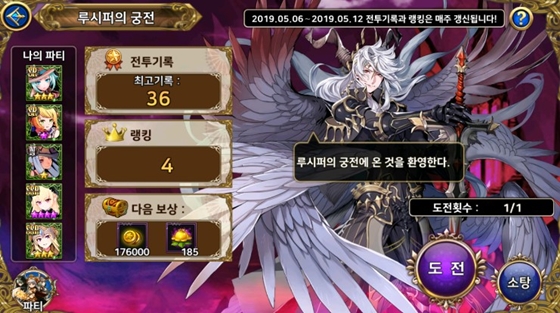 ‘루시퍼의 궁전’의 경우 릴레이 형식으로 스테이지를 공략하는 콘텐츠다. 1일 1회 이용이 가능하며 더 많은 스테이지를 완료할수록 보상이 증가한다. 보상으로는 영웅 육성에 필요한 골드와 ‘생명의 열매’이 제공된다. 주간 랭킹에 따라 추가 적인 보상도 받을 수 있다.