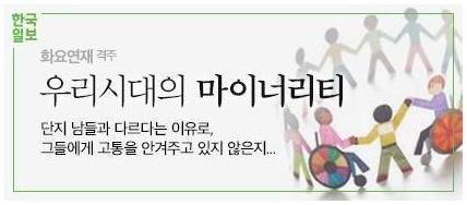 ※ 대부분의 사람은 적어도 한 두 가지 측면에서는 소수자입니다. 자신의 불편은 크게 느끼면서도 다른 사람의 소수자성에 대해서는 무관심하거나 심지어 냉소적인 게 우리의 현실입니다. <한국일보>는 격주 화요일 한국 사회에서 유독 힘들게 살아가는 소수자들의 모습을 들여다 봅니다.