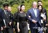 조지 부시 전 미국 대통령과 노무현 전 대통령의 손녀 노서은양(가운데 왼쪽)이 23일 오전 경남 김해 봉하마을에서 열린 고 노무현 전 대통령 서거 10주기 추도식에 참석해 이동하고 있다./사진=김휘선 기자 |