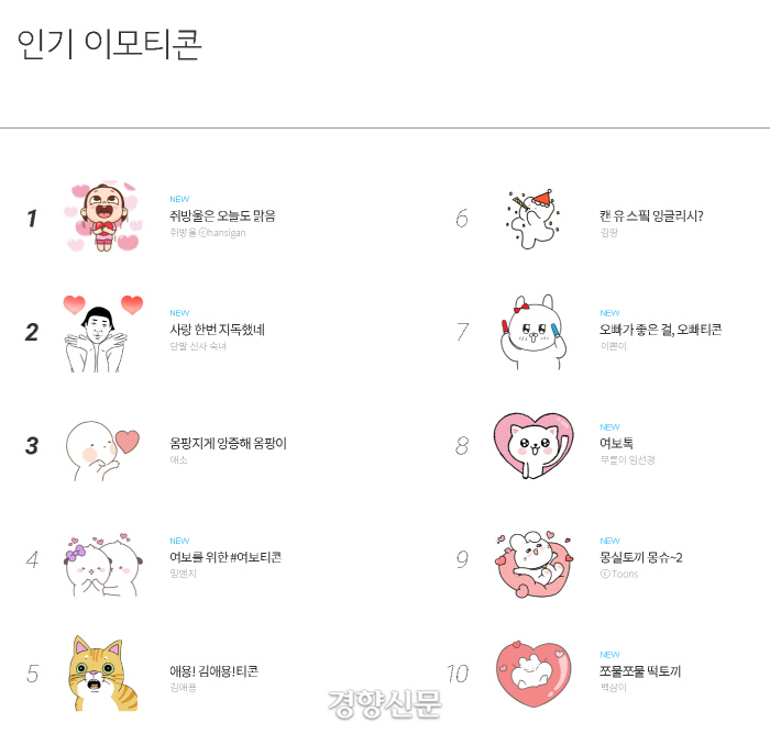 ‘옴팡이’ ‘여보티콘’ ‘몽실토끼’ 등 인기