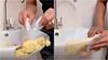 영상을 보면, 남성은 깨진 세면대에 라면을 채워 넣기 시작합니다. 그리고 어느 정도 모양이 잡히자 그 위에 강력 접착제를 뿌려 단단하게 만든 다음, 끌과 사포로 긁어내며 표면을 다듬습니다.