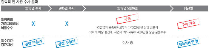 검찰은 김 전 차관이 이러한 뇌물을 받은 대가로 윤씨 지인인 사업가 김씨의 형사 사건 진행 상황을 조회해준 것으로 보고 있다.