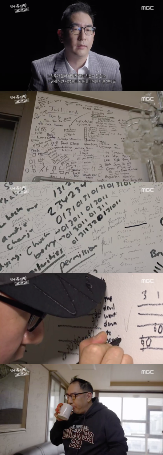 이는 조울증의 징표였다. 에너지 넘치는 조증 상태가 되면 주체할 수 없는 생각을 표출하는 것. 숫자부터 영어, 한글, 다양한 표기가 가득했다. 유진박은 약을 먹으며 조울증 조절하고 있다며 그렇다고 예술적 영감이 모두 흩어지는 건 아니라고 했다. 그는 “저는 독창적인 음악을 좋아한다. 어떤 노래는 예측이 되는데 그건 지루하다”며 남다른 천재성을 뽐냈다.
