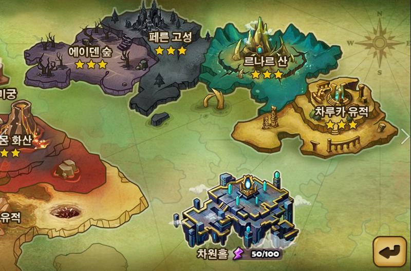 신규 콘텐츠 '차원홀' 업데이트로 인해 새로운 차원을 탐험하는 시나리오와 신규맵도 추가된다. 기존 월드맵에서 차원홀 지역을 터치하면 새로운 차원맵이 등장한다. 이번 업데이트에서는 용맹한 야수들의 서식지 '차원 카르잔'과 지혜로운 요정들이 사는 '차원 엘루니아' 두 개의 차원이 먼저 공개되며, 추후 신규 차원 업데이트가 계속해서 진행될 예정이다.