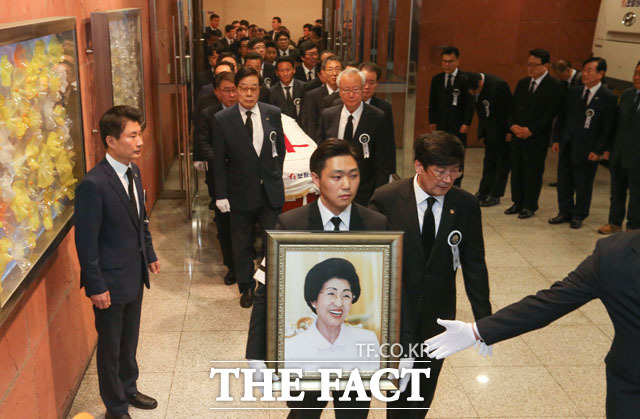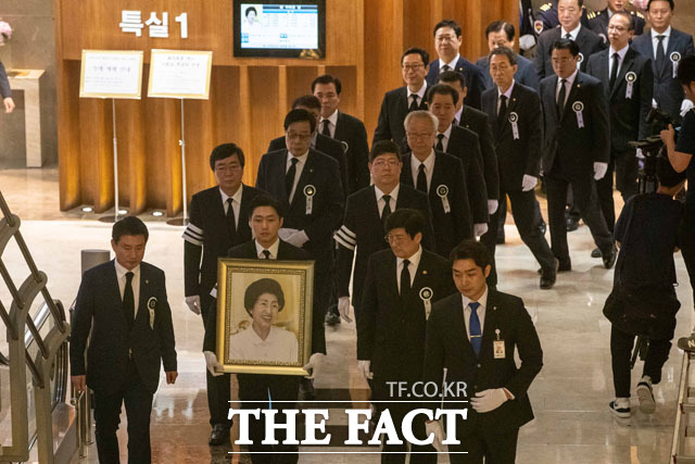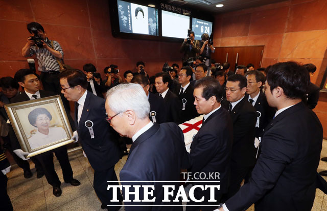 [더팩트 | 남윤호 기자] 김대중 전 대통령의 부인 고 이희호 여사의 발인이 14일 오전 서울 서대문구 신촌세브란스병원 장례식장에서 엄수되고 있다.