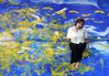 작품에 대해 얘기하는 권지안은 방송에서 접하는 백치미 솔비와는 전혀 다르다. 같은 사람이 맞나 싶다가도 이제야 제 모습을 찾은 듯하다. 연예인의 화가 겸업은 창의성을 확장한 참신한 도전으로 보일 수 있지만 때로는 유명세를 등에 업은 ‘취미 화가(Sunday Painter)’로 치부되기도 한다. 그럼에도 권씨는 묵묵히 자기 길을 걸었고 13일에는 종로구 인사동 인사아트센터 1·2층에서 대표작 70여점을 모은 대규모 개인전을 시작했다. 파란 바탕의 신작도 ‘바이올렛’이라는 제목으로 선보였다. “바이올렛은 멍 색깔”이라는 그는 “멍이 들수록 더 강해지는, 사랑은 상처로 입은 멍을 치유하고 사람을 더 단단하게 만든다”면서 남자 무용수와 함께 퍼포먼스를 펼쳐 작품을 완성했다.