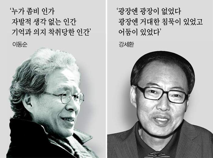 연작시(連作詩)로 우리 시대를 조명한 시집 두 권이 나란히 나왔다. 이동순(69) 시인의 시집 '좀비에 관한 연구'와 강세환(63) 시인의 시집 '면벽(面壁)'이 천년의 시작 출판사에서 동시에 출간됐다. 이동순 시집은 '지하철 좀비' '국회 좀비' '왕따 좀비' '인공지능 좀비' 등등의 연작시 60여 편으로 '인간의 좀비화(化)'를 풍자했다. 모든 작품에 랩의 리듬을 적용했다고 한다. 마지막 장시(長詩) '스몸비 타령'은 스마트폰의 해독을 판소리 타령으로 비판했다. 시인은 '뇌가 죽어버린 인간 모두 좀비 되었지'라며 '시급한 건/ 내 속의 좀비 끝까지 몰아내기'라고 노래했다.
