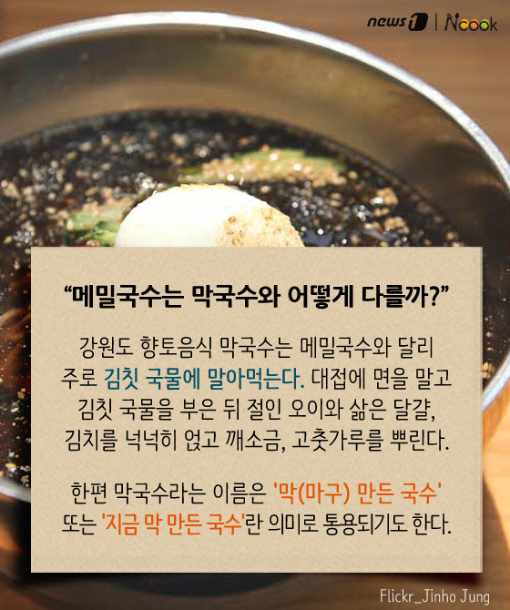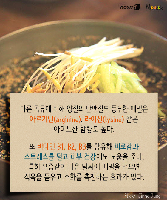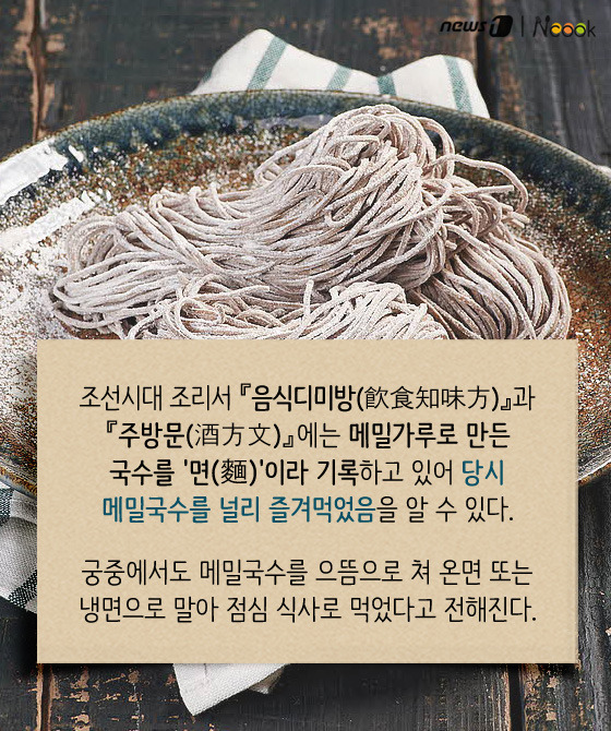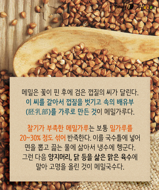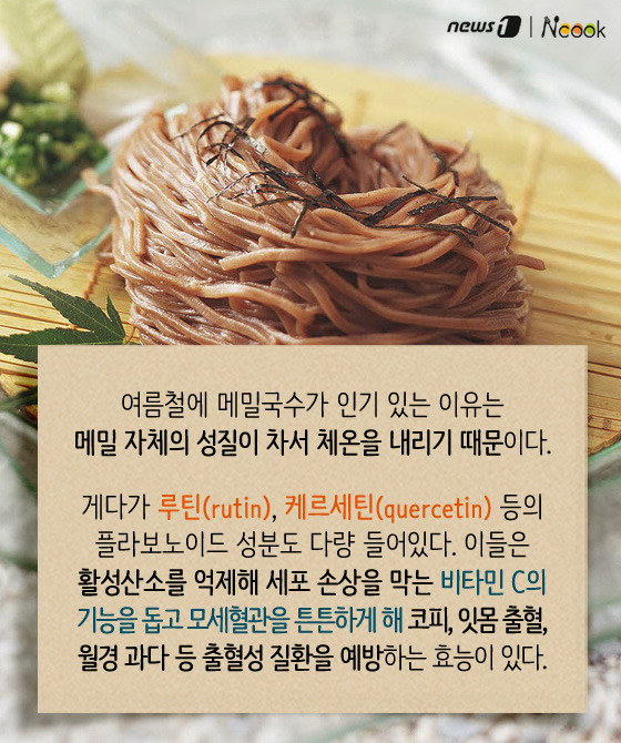 (서울=뉴스1) 박라경 에디터 = 여름철 별미 중 하나인 메밀국수는 시원한 육수와 부드럽게 씹히는 면발이 매력적인 음식이다. 더운 날씨에 메밀국수 한 그릇이면 뼛속까지 시원해지는 느낌이 드는 건 물론, 잃어버린 입맛을 되살리기에 이만한 게 없다. 역사 속에 등장한 메밀국수부터 막국수, 소바와의 차이, 또 메밀의 효능까지 하나하나 살펴보도록 하자.