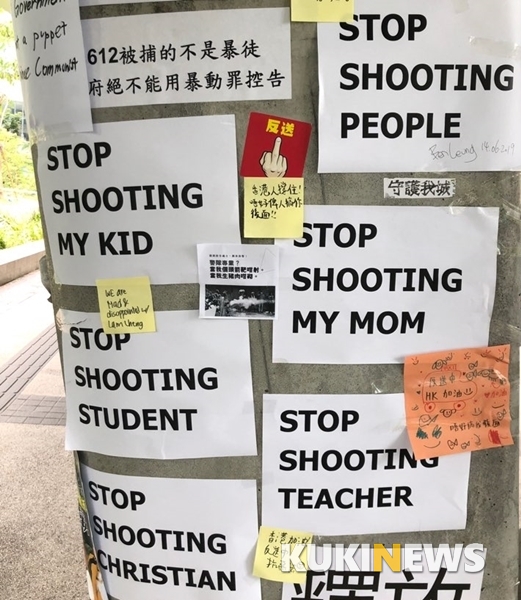 홍콩인들이 포스트잇과 대자보로 내어놓은 항의의 메시지 중 일부다. 특히 캐리 램 장관과 스테판 로우 경무처장에 대한 비판이 많았다. 이들은 홍콩 시위를 폭동으로 규정, 강경 진압을 결정한 당사자다. 머리에 뿔이 그려 넣거나 히틀러처럼 묘사한 것도 있었다. 친중파인 영화배우 청룽이 이번 사태에 대해 알지 못한다고 말한 것을 비꼰 그림은 정부 청사 기둥에 붙어 있었다.