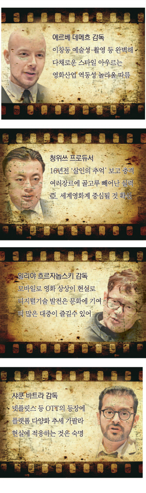 일리야 흐르자놉스키(44), 샤쿤 바트라(36), 에르베 데메흐(36), 청위쓰(38) 등 지난 2일 서울 용산구 그랜드 하얏트 서울에서 만난 각국의 젊은 영화인들은 2000년대 초중반 ‘한국영화 르네상스’를 거쳐 세계에서 다섯 번째로 큰 시장으로 성장한 충무로의 위상에 하나같이 찬사를 늘어놓았다. 이들은 한국이미지커뮤니케이션연구원(CICI)이 주관하는 ‘문화소통포럼(CCF) 2019’ 참석을 위해 최근 방한했다.