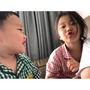 9일 배우 송승아는 자신의 인스타그램에 "행복한 우리 집♥ 엄마꺼 립스틱 바르고 놀기 & 잘 준비 다했는데 빵 먹고 싶어서 나가는 조아, 하다"라는 글과 함께 두 자녀의 근황이 담긴 사진을 공개했다.