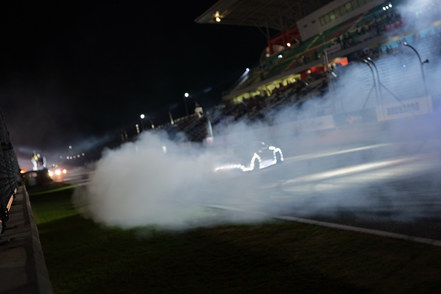 V8 엔진의 굉음과 선수들의 치열한 경쟁 끝에 김동은이 가장 먼저 체커를 받는 순간 수 많은 폭죽이 강원도의 밤 하늘을 가득 채웠고, 관람객들을 환호하며 선수들에게 축하와 격려의 박수를 보냈다.