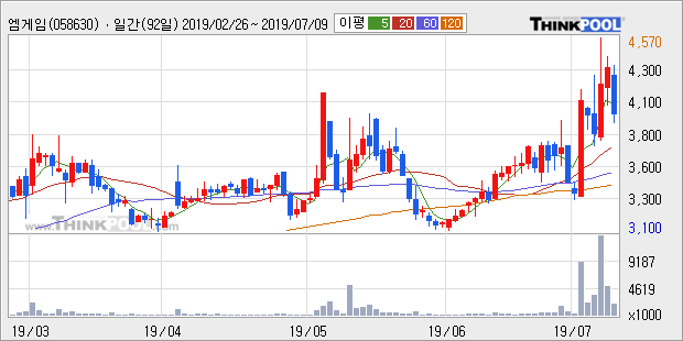 개장 초 4280원였던 주가는 계속 빠져서 오후 2시 53분 현재 3900원(-10.14%)을 기록하고 있다.