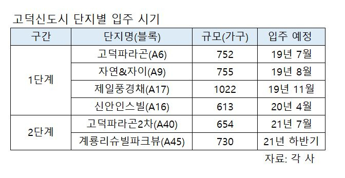 고덕파라곤에 이어 8월에는 A9블록의 자연&자이(755가구), 11월 제일풍경채(A17블록, 1022가구)도 입주를 시작한다. A16블록에 위치한 신안인스빌(613가구) 입주도 내년 4월 예정돼 있다.