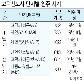 고덕파라곤에 이어 8월에는 A9블록의 자연&자이(755가구), 11월 제일풍경채(A17블록, 1022가구)도 입주를 시작한다. A16블록에 위치한 신안인스빌(613가구) 입주도 내년 4월 예정돼 있다.