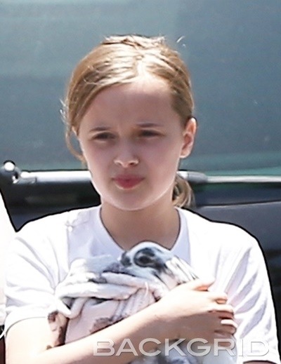 공개된 사진 속 졸리는 브래드 피트 판박이 딸 비비엔과 다정하게 걷고 있는 모습. 비비엔은 소중하게 토끼를 품에 안고 있다.