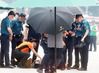 폭염 속 근무 중 이던 의무경찰이 구토와 어지럼증을 호소해 119 구급대원으로부터 응급조치를 받는 모습. 사진 속 인물들은 기사와 직접적인 관련이 없음. [연합뉴스]