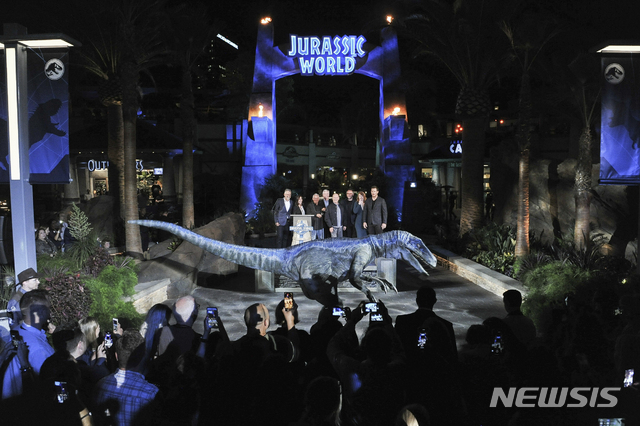 【로스앤젤레스= 신화/ 뉴시스】차미례 기자 = 할리우드의 유니버설 영화사가 영화' 주라기 월드'의 테마에서 따온 갖가지 최첨단 탈것과 놀이기구를 소개하는 "주라기 월드- 더 라이드" 놀이공원의 개막식을 22일 밤(현지시간)에 거행하고 영업에 돌입했다.