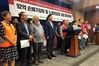 현대중공업 노조와 ‘현대중공업 법인분할 중단, 하청노동자 임금체불해결 촉구 울산지역대책위원회’가 24일 오전 11시 울산시청 프레스센터에서 기자회견을 열고 92억 손해가압류 등의 노동탄압을 중단하라고 현대중공업에 요구하고 있다. /사진=최수상 기자