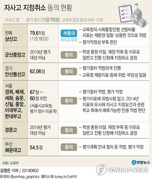 앞서 전북교육청은 전주 상산고에 대해서도 지정취소 결정을 내렸으나 교육부는 지난달 26일 지정취소 결정에 부동의했다.