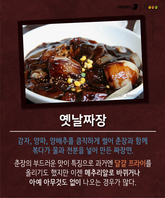 (서울=뉴스1) 박라경 에디터 = 짜장면은 누구나 추억이 하나씩 있을 정도로 우리에게 친숙한 음식이다. 중국 산동지방 출신 화교들이 인천항 부둣가에서 첨면장에 국수를 비벼 먹은 것이 시초로 점차 지금의 한국식 짜장면으로 변화했다. 흔히 짜장면 하면 떠오르는 종류가 몇몇에 국한되지만 생각보다 더 다양한 형태의 짜장면이 있다. 8가지 대표 짜장면에 대해 알아봤다.