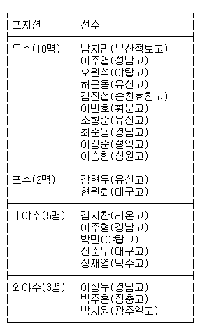 ◇ 제29회 WBSC 세계 청소년야구선수권대회 한국 대표팀 명단