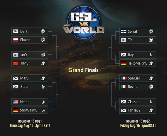한국을 대표하는 ‘GSL 올스타’ 팀으로는 조성주(Maru), 박령우(Dark), 김도우(Classic)를 비롯해 정명훈(FanTaSy), 김대엽(Stats), 어윤수(soO), 전태양(TY), 조성호(Trap) 등이 참여한다.