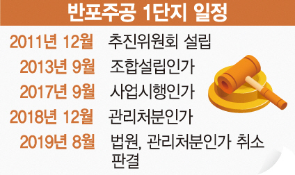 반포주공 1단지는 입지는 물론 2,120가구를 5,338가구로 변모시키는 초대형 사업이라는 점에서 일찌감치 강남 재건축 시장의 기대주로 언급돼왔다. 강남 재건축 단지 중에서도 반포주공 1단지가 특히 주목받았던 이유는 재초환이 부활하기 직전인 지난 2017년 12월 구청에 관리처분계획인가 신청을 내 규제를 아슬아슬하게 벗어날 수 있었다는 점이다. 재초환은 재건축 아파트 조합원 1인당 평균 개발이익(초과이익)이 3,000만원을 넘으면 이익의 최대 50%를 부담금으로 거둬들이는 제도다. 하지만 관리처분계획 인가를 다시 받으면 재초환을 적용받아야 한다.