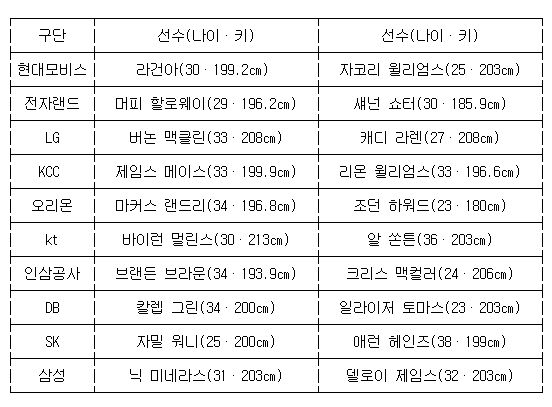 이 덕분에 kt 유니폼을 입은 선수들의 NBA 경력이 돋보인다.