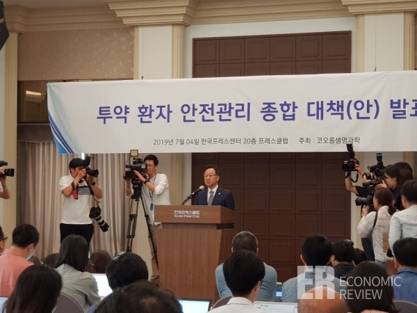 지난달 이우석 코오롱생명과학 대표가 인보사 사태와 관련해 입장문을 발표했다. 사진=이코노믹리뷰 황진중 기자 상장폐지만은 막아야
