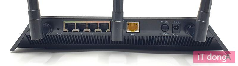 제품 후면에는 외부 인터넷을 연결하는 1개의 WAN 포트 및 각 단말기로 연결되는 4개의 LAN 포트, 그리고 전원버튼 및 본체 설정을 초기화 할 수 있는 리셋 (reset) 버튼이 달려있다. 모든 유선 네트워크 포트는 기가비트(1Gbps) 속도를 지원하므로 기가인터넷 환경에서 이용하기에 적합하다. 그 외에 내부에 1GHz의 듀얼코어 CPU 및 512MB RAM, 128MB의 플래시메모리 등의 비교적 충실한 사양을 갖췄다.